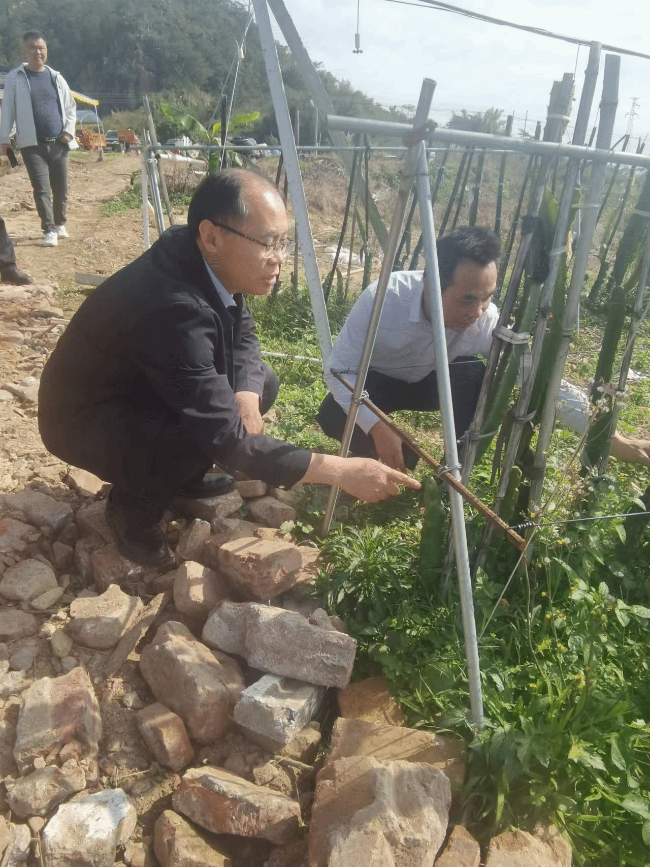 在特派员团队走访罗定市桥华果业有限公司、罗定市莫村状元农业发展有限公司期间,刘双印院长带领特派员下到田间地头,切实询问农户作物种植生产中遇到的病虫害问题和水肥、补光自动化问题。在得知莫村的朝天椒遇到了病害,特派员团队当即与我校专家取得联系,帮助农户进行防控病害指导。并对于桥华果业的水肥一体化和光照补足技术措施进行了可行性探讨。