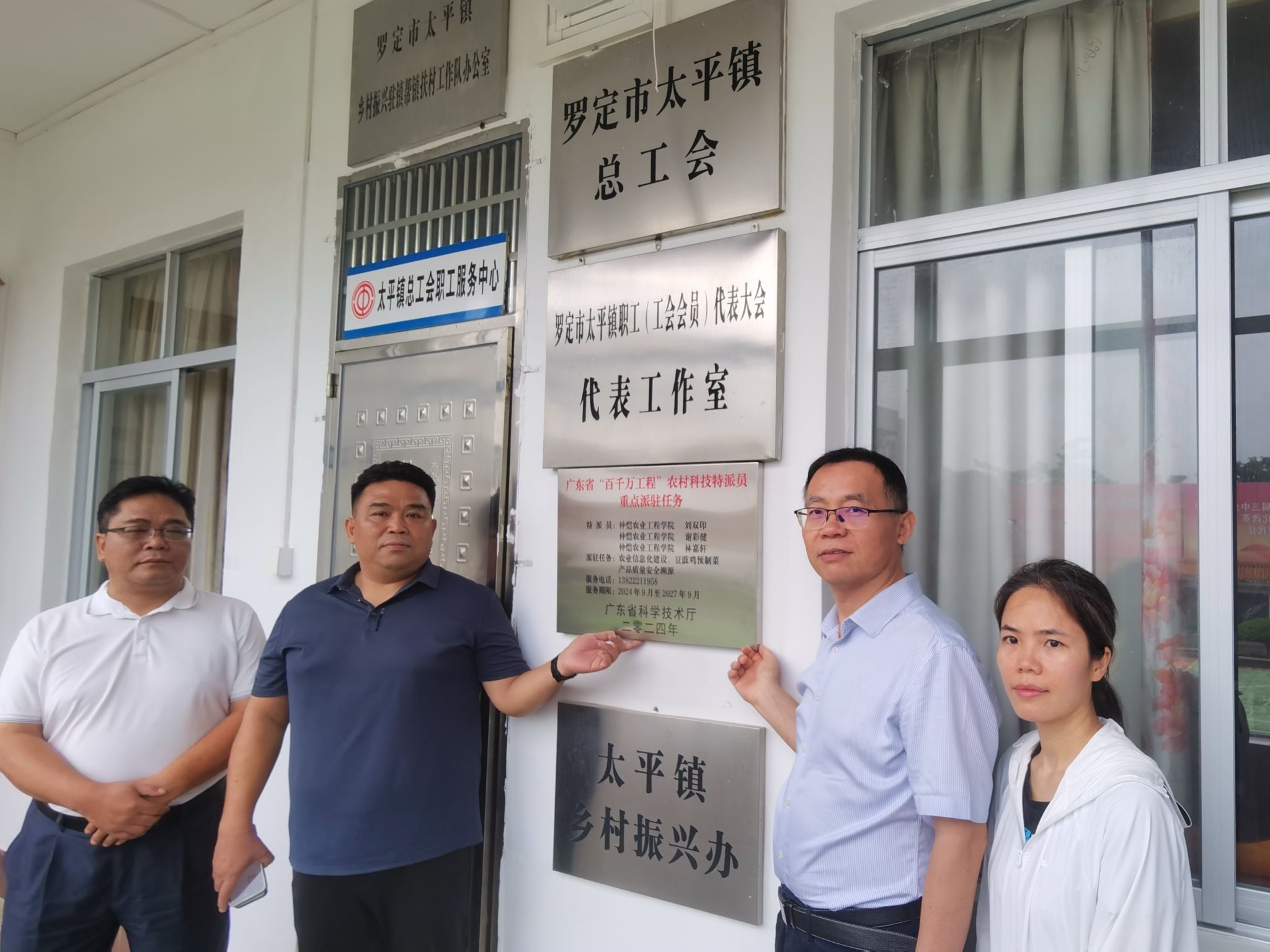 在太平镇,特派员团队在工作队驻地正式挂设“广东省‘百千万工程’农村科技特派员重点派驻任务”牌匾之后,与太平镇镇政府王良新副镇长、驻镇工作队程恒队长进行了深度交流。刘双印教授总结了团队在太平镇开展科技服务的具体进展与初步成效,王良新副镇长与程恒队长对特派员团队带来的技术支持及其在推动当地农业发展中显现的积极作用给予了充分认可。刘双印教授、王良新副镇长、程队长聚焦AI赋能农业生产的核心路径,围绕太平镇农业发展的瓶颈与未来方向展开了富有建设性的讨论,并共同制定了下一步更具针对性和实效性的帮扶计划,为科技服务精准对接产业需求奠定坚实基础。