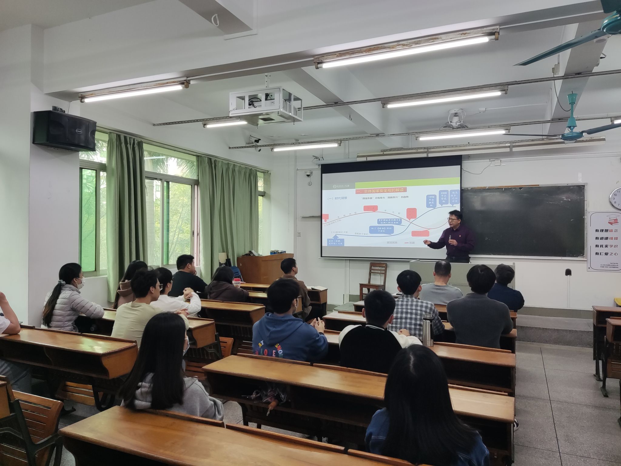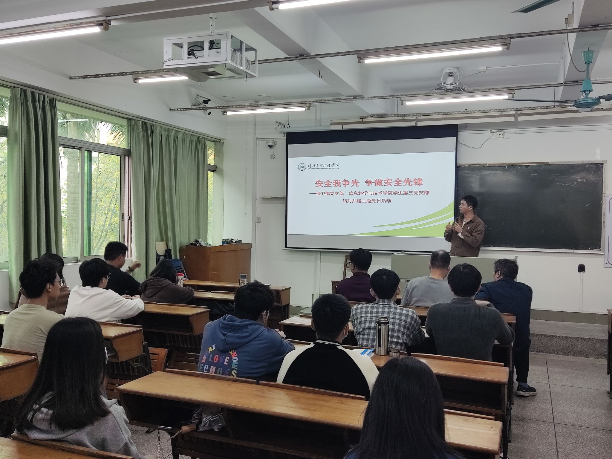 接着,陈丹雄以“安全我争先,争做安全先锋”为主题,他从历史维度、总体国家安全观、安全案例精剖析三个方面进行了阐述,以鲜明案例让同学们引以为戒。随后两支部成员就校园安全、后勤服务、校园环境等问题展开了热烈深刻的讨论。