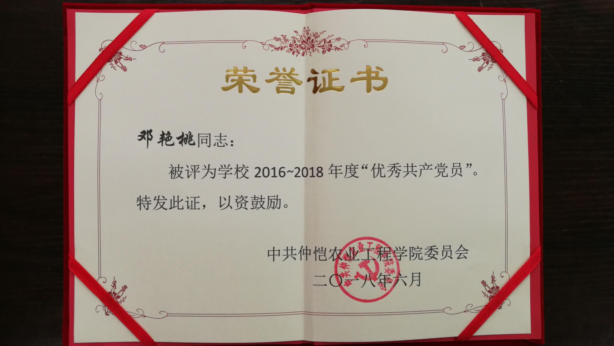 邓艳桃同志获“优秀共产党”荣誉称号