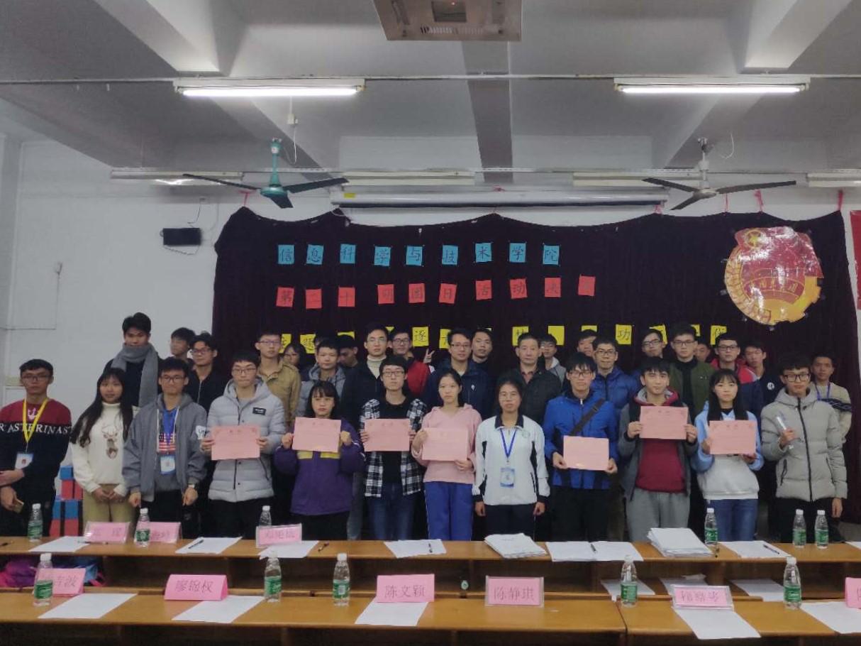 12月13日晚,信息科学与技术学院团日活动复赛在教学楼B601举行。经过初赛的激烈角逐,计机181,信管182和计机175等六个班级脱颖而出顺利进入复赛。学院党总支书记吴家培、副书记王浩,辅导员吴南生和邓艳桃,以及主要团学干部出席。