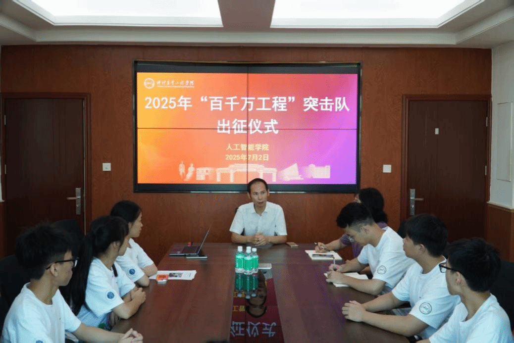 2025年7月2日上午,人工智能学院于海珠校区行政楼808会议室隆重举行“百千万工程”突击队行动出征仪式。学院党委书记熊友华、副书记吉晓娟,辅导员黎耀元、马颖川及“仲有梦”团队全体成员出席会议。