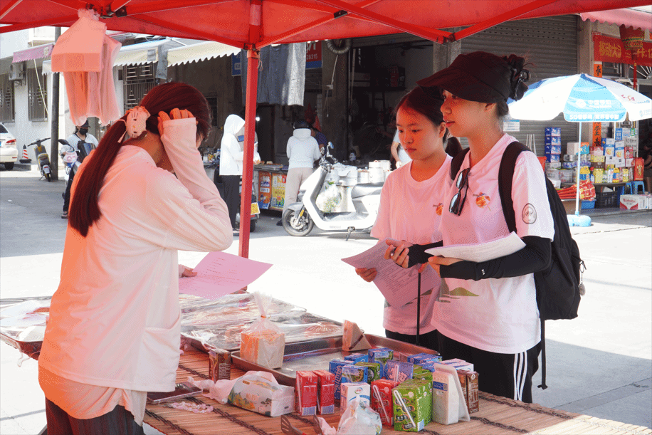 活动伊始,为了精准把握基层政策认知痛点,掌握学生和家长对国家助学贷款政策的了解情况和看法,实践队开展了助学贷款专题的问卷调研活动。团队成员深入碣石镇的各个社区,对周边群众、学生家长、学校、商户、街道进行实地调研展开了细致的问卷调研,内容涵盖对国家助学贷款政策的知晓渠道、家庭经济状况、子女教育情况等多个方面。
