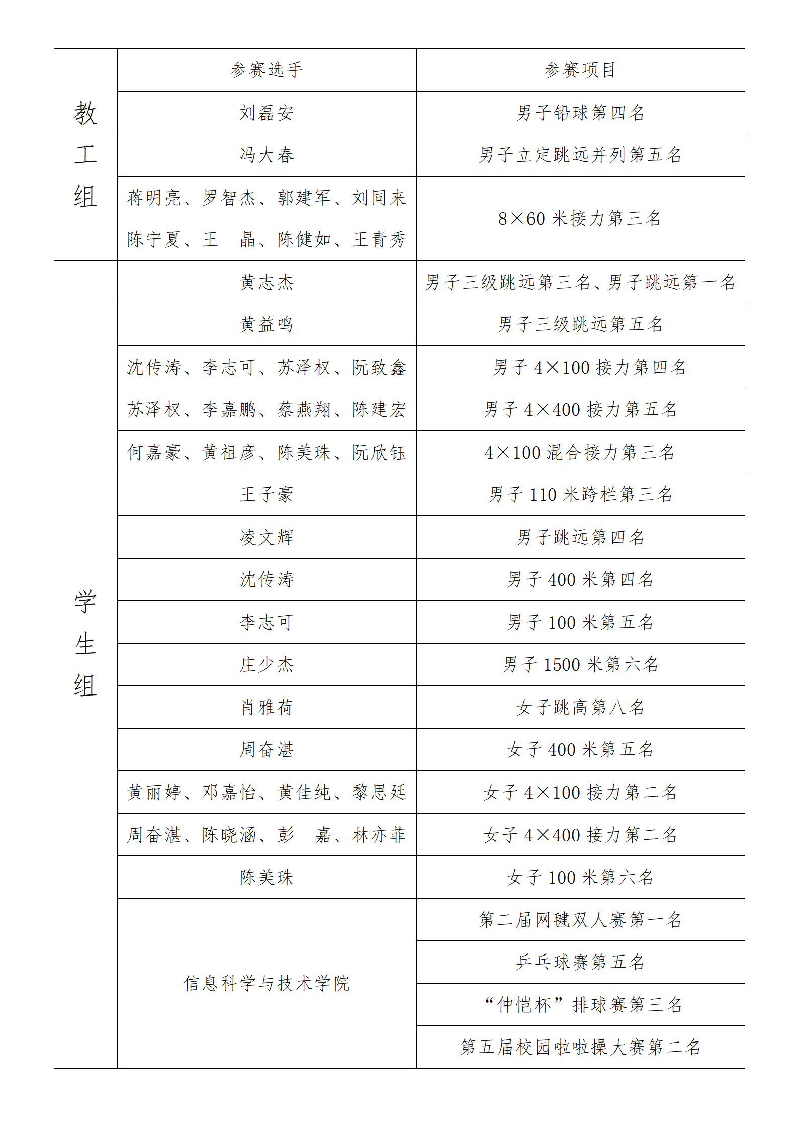 仲恺农业工程学院第二十九届运动会信息科学与技术学院获奖成绩