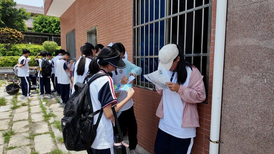 摆摊宣传:让绿色理念在校园里生根发芽。揣着调研时记录的生态故事,和净滩行动中攒下的真切感悟,团队在当地中学设置宣传点开展科普活动。通过发放彩色插图宣传手册,普及“绿美广东”建设目标与海洋生态保护知识;在互动游戏区设置“垃圾分类小游戏”,帮助同学们掌握“可回收垃圾”“有害垃圾”“厨余垃圾”“其他垃圾”的分类标准,提升青少年生态环保意识。