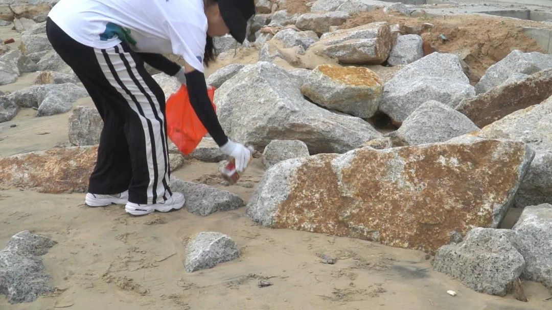 净滩行动:用脚步丈量海岸的“净”与“境”。实践期间,团队开展净滩行动。队员们戴着手套、拎着垃圾袋,沿海岸线清理被海浪冲上岸的塑料碎片、渔网残线、食品包装等垃圾,重点对礁石群、贝壳聚集带等生态区域进行细致清理,减少人为废弃物对海洋生态的破坏。过程中,当看到礁石旁散落的塑料袋、贝壳里卡着的烟蒂时,大家深刻感受到海洋污染的严重性,更坚定了参与生态保护的决心。