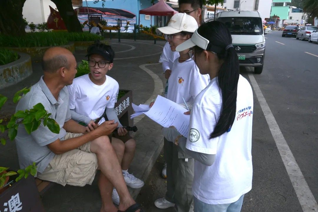 调研走访:听见人与自然的“双向奔赴”。在碣石镇期间,团队成员主动融入当地生活,通过与居民唠家常、和游客交流等方式,从日常话语中梳理生态保护工作在基层落地后的细微变化,了解普通民众对生态环境的直观感受。为全面掌握“绿美广东”建设在基层的实施成效,团队以小分队形式分头行动,深入沿岸村落和景区商户。调研中,通过精心设计的问卷收集基础信息,借助真诚访谈记录基层在生态建设中的真实思考、需求与期盼,积累了多维度素材。