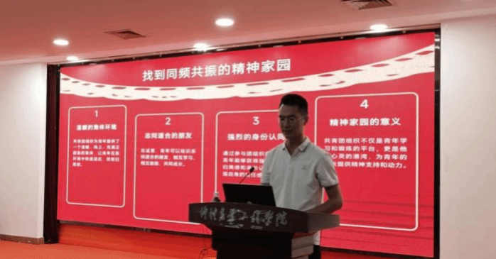 同时开展主题教育讲座,易洋老师以《青春向党筑初心》为题,系统介绍新生入党流程和意义,鼓励新生积极向党组织靠拢;黎耀元老师以《凝聚新青年 奋进新征程》为题,围绕为何向团旗靠拢,入团申请流程,鼓励新生争做有理想抱负、有责任担当的仲恺青年;许嘉林老师以《校园生活怎么“玩”得有意义?》为题,通过介绍学生会,鼓励新生积极加入校园组织,通过学生组织锻炼自身的综合能力。张裴丹老师以《什么是家庭经济困难认定》为题,讲解家庭经济困难学生可申请的奖助学金和助学贷款,鼓励同学们勇于逐梦。