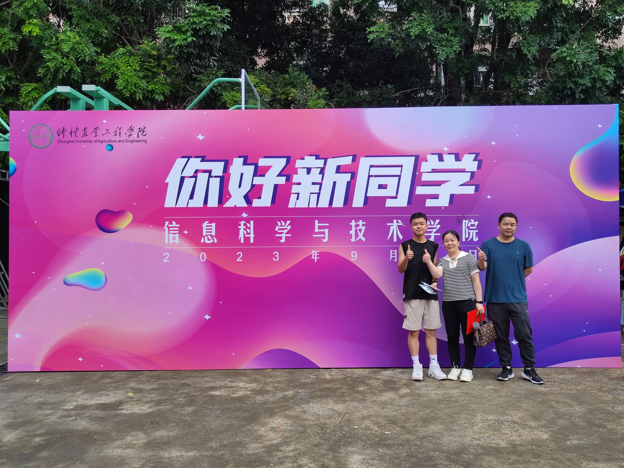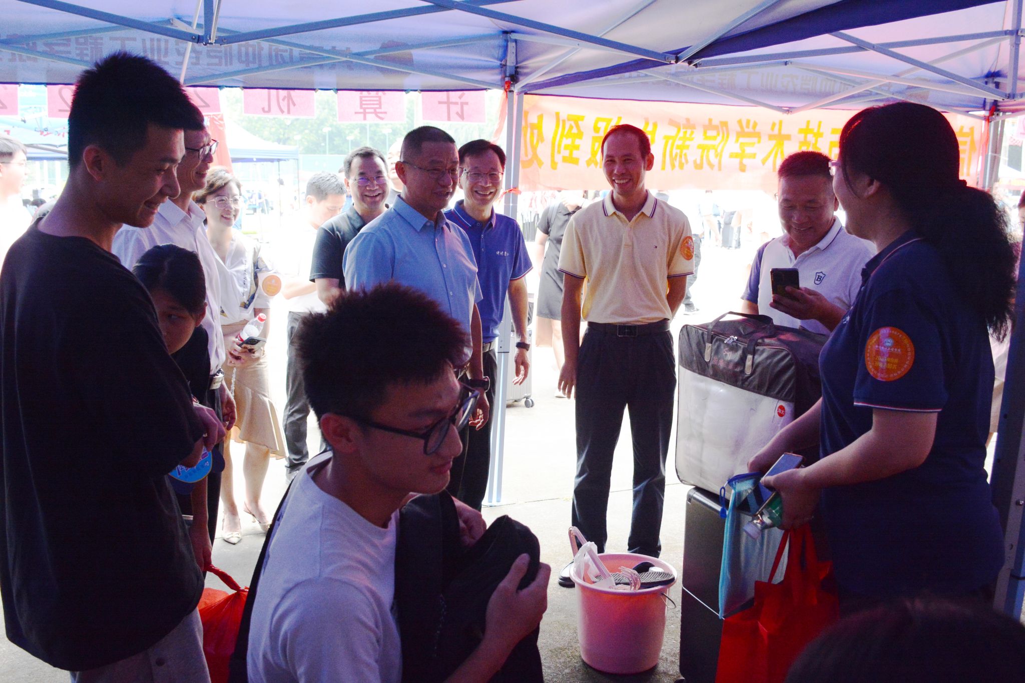 在新生报到处,廖明校长和朱立学副校长率相关单位负责人深入迎新现场,与同学们进行亲切交流与问候,并对他们加入仲恺农业工程学院表示热烈的欢迎。在前来报到的新生和家长中,廖明校长还遇到了与仲园分外“有缘”的计算机233班梁朗元同学,梁朗元的父亲是仲恺农业工程学院1992届毕业生,时隔31年,他考上了父亲的母校,仲园情得以传承。