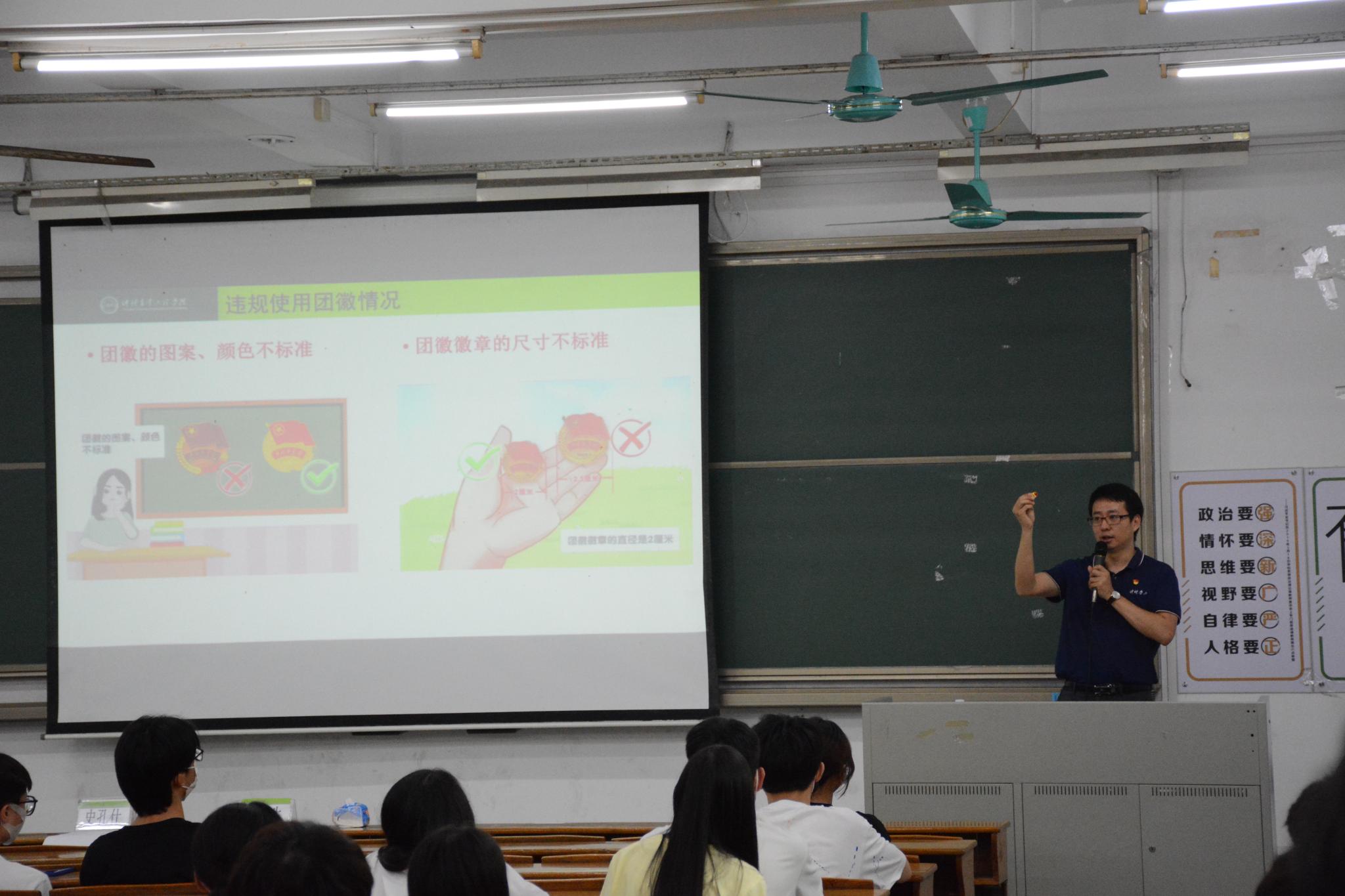 课上,吴南生分别讲述了党徽党旗和团徽团旗的由来,中国共产党从秋收起义亮出第一面旗帜再到如今带领中国人民取得伟大成就,党旗的演变见证了中国共产党从一艘小小红船到如今领航中国行稳致远的巍巍巨轮。他指出,党旗党徽是中国共产党的象征和标志,党旗引领前进的方向,凝聚奋斗的力量。同时,他还就如何正确使用党旗党徽和团旗团徽进行了讲解,强调了规范使用党旗党徽和团旗团徽对增强党员党性和提高团员意识的重要性。