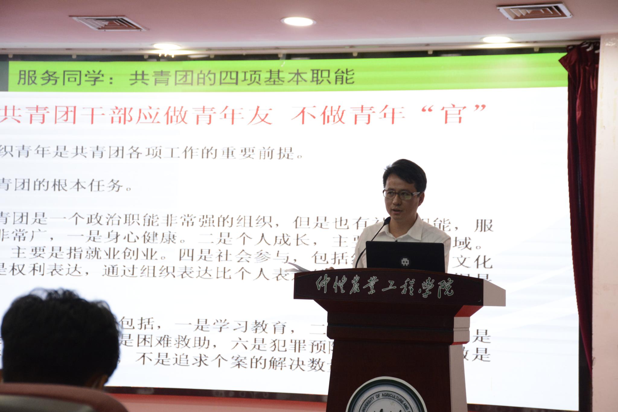 为提高团员的政治觉悟、思想品质和能力素质,近日,我院在学术报告厅举行团课培训活动。本次培训由院团委书记吴南生主讲,学院学生干部、共青团员共同参与。