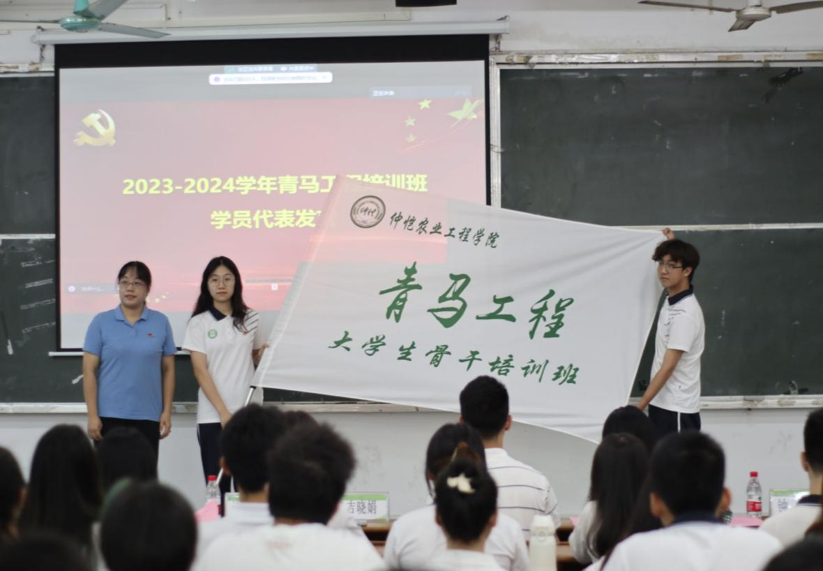 吉晓娟为2023-2024学年“青马工程”培训班授旗。