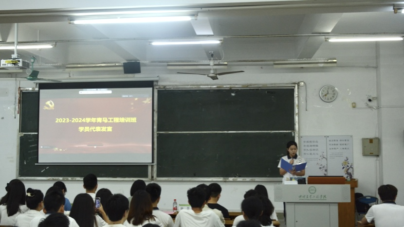 开班仪式在雄壮的国歌声中拉开帷幕。青马班学员代表林金凤发言,她结合自身实际说明马克思主义对当代大学生的重要意义,鼓励大家树立远大理想和崇高信念,坚决做到遵守纪律、珍惜机会;积极进取,学以致用;奋勇担当,投身实践,努力成长为综合素质突出的青年政治骨干。