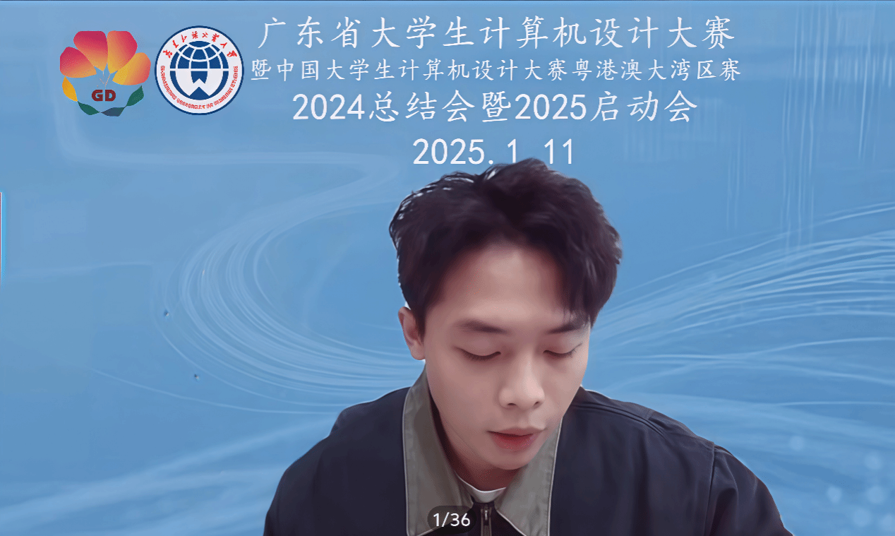 1月11日,广东省大学生计算机设计大赛2024年总结会暨2025年启动会顺利召开,本次会议由广东省教育厅主办、广东外语外贸大学承办,广东省教育厅高教处科长张兵,大赛组委会副主任王常吉教授、组委会副秘书长李宇耀博士,协办院校代表、各参赛队伍指导教师代表及参赛学生代表近300人参会,我校信息科学与技术学院“基于区块链和大数据的肉鸽产品可信溯源服务平台”项目团队作为优秀作品获奖团队受邀作经验分享。