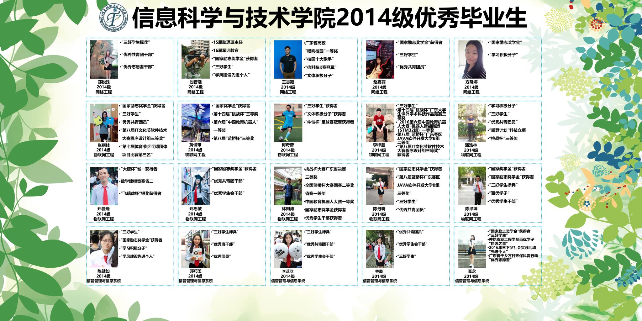 信息科学与技术学院2018届优秀毕业生