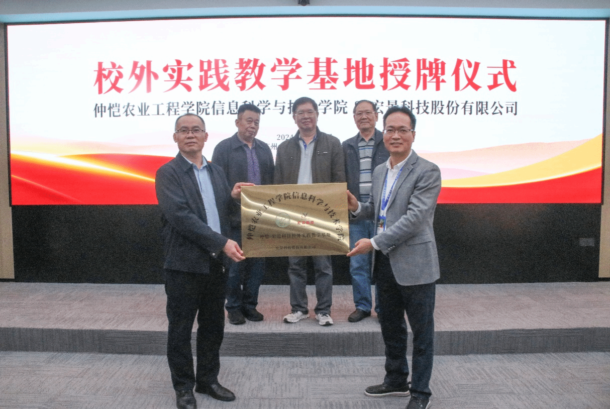 2024年11月25日,仲恺农业工程学院信息科学与技术学院院长刘双印教授、刘同来副教授赴宏景科技股份有限公司举行校外实习基地挂牌仪式,标志着双方在产学研合作方面取得了重要进展。在活动中,刘双印院长代表学院与宏景科技股份有限公司总裁林山驰共同为校外实习基地揭牌。此次合作,将为我院学生提供宝贵的实习实践机会,进一步深化校企合作,促进教育链、人才链与产业链、创新链的有机衔接。