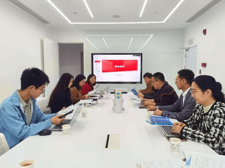 在中数通信息有限公司,部门经理谭天涛主要介绍了公司的历史背景、业务模块、数字化转型情况以及服务对象,同时表达了对我院毕业生业务能力和学习能力的认可。郑建华分析了我院各专业与该公司人才需求的契合度,介绍了我院2024届毕业生的信息,并邀请企业参加我院举办的专场招聘会,同时邀请对方专家到我院为学生开展职业生涯规划培训课,使学生更明晰自己的职业发展路线。双方同时就签订校外实习实践基地细节进行深入交流。会后,我院与在该公司就职的7名毕业生开展了座谈交流。