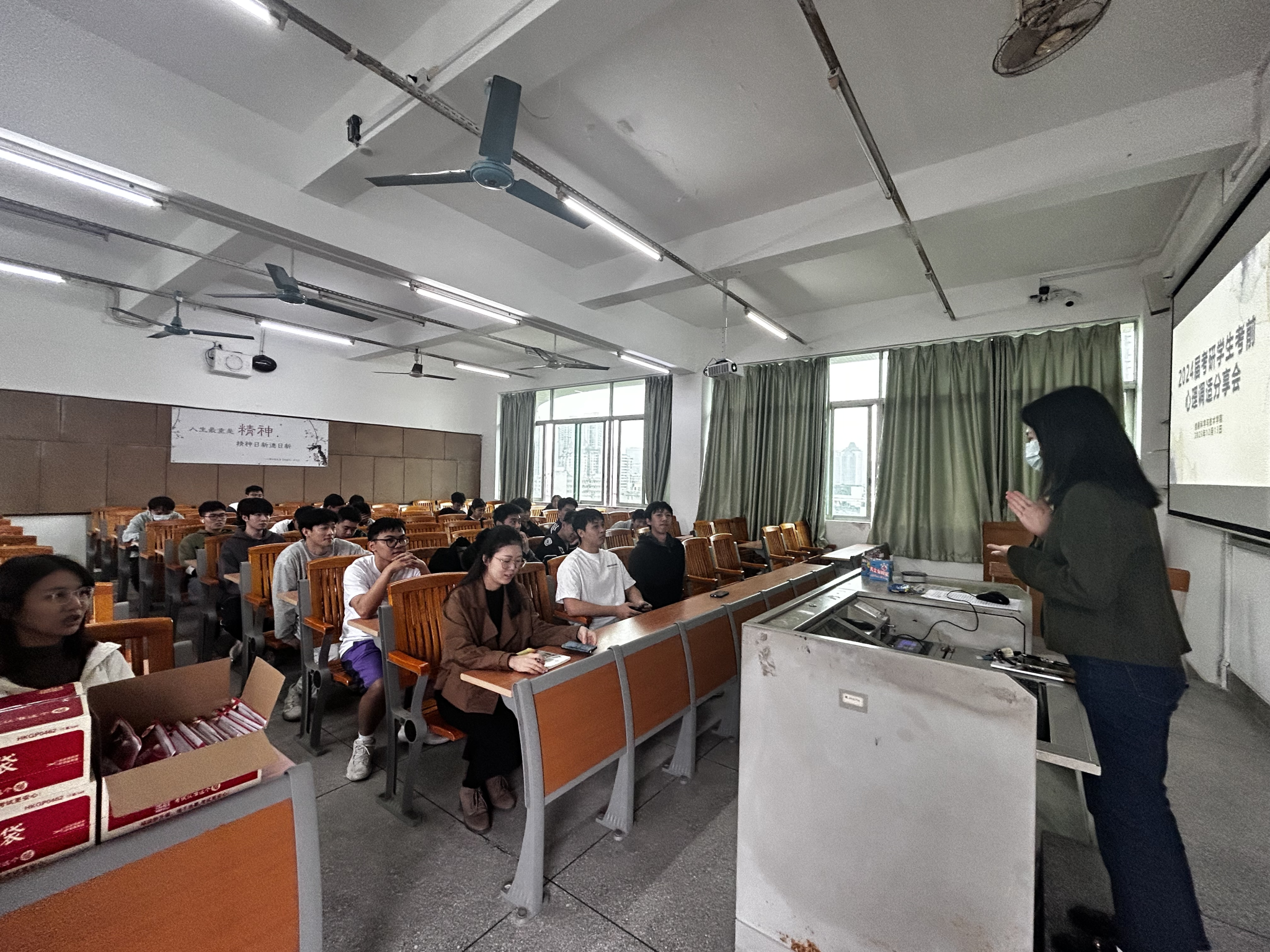 会上,兼职辅导员吴伊琳分享了自己的考研经历和心路历程,以过来人的经验并结合心理学知识为考研学生做考前心理调适,缓解考前焦虑,避免精神内耗,同时提醒学生考前准备工作以及考试过程注意事项。