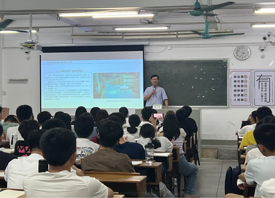 朱立学围绕“数智亚运”、“华为突围”等时事热点,结合自身经历,生动形象地展示了中国在人工智能、5G通信、新能源等科技领域取得的重大成就,而这些成就的取得离不开国家对科技创新的高度重视和大力投入。他指出,国家在现代科技领域取得了一定的成就,但在工程软件技术、芯片技术、种业技术等方面仍面临着许多挑战和难点,鼓励同学们要把握时代脉搏、树立全球视野、学好专业知识。