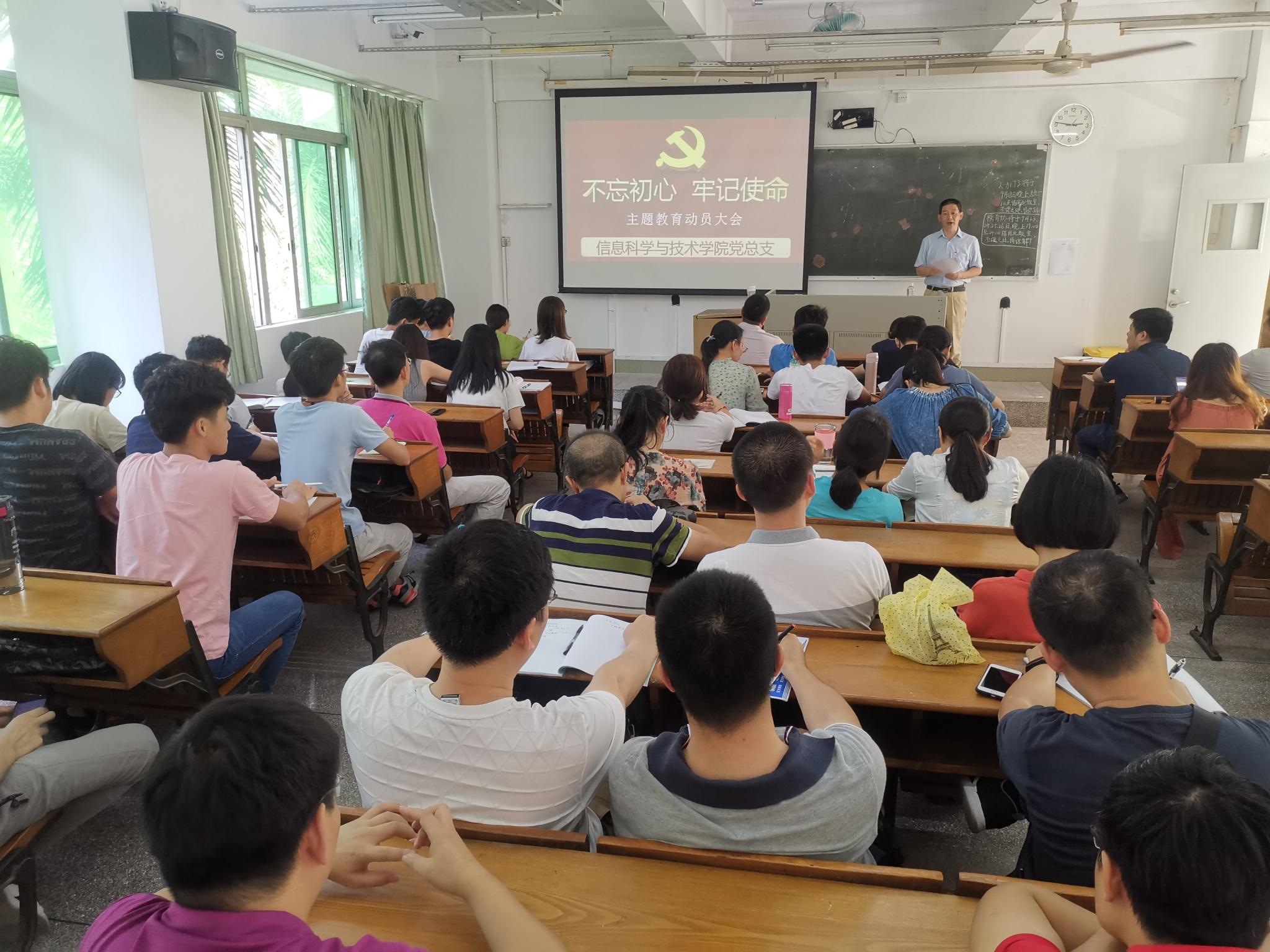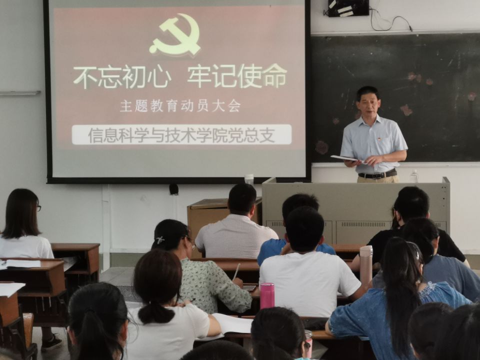为深入贯彻落实习近平总书记在“不忘初心、牢记使命”主题教育工作会议上的重要讲话精神,对照学校主题教育领导小组工作要求,我院党总支于9月18日下午2:30在教学楼305召开了“不忘初心、牢记使命”主题教育动员大会,对学院主题教育进行动员部署。学院班子成员、全体师生党员参加。