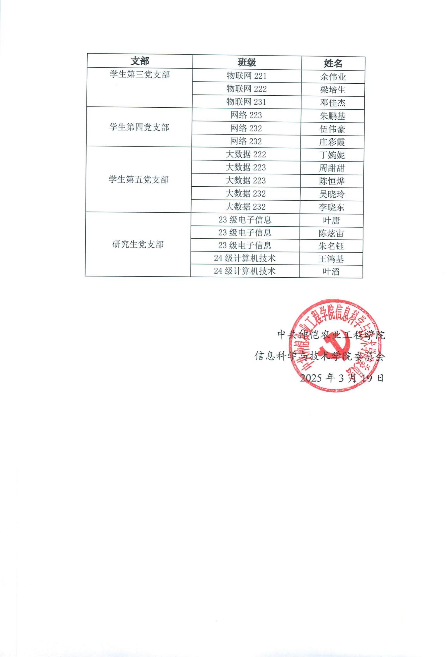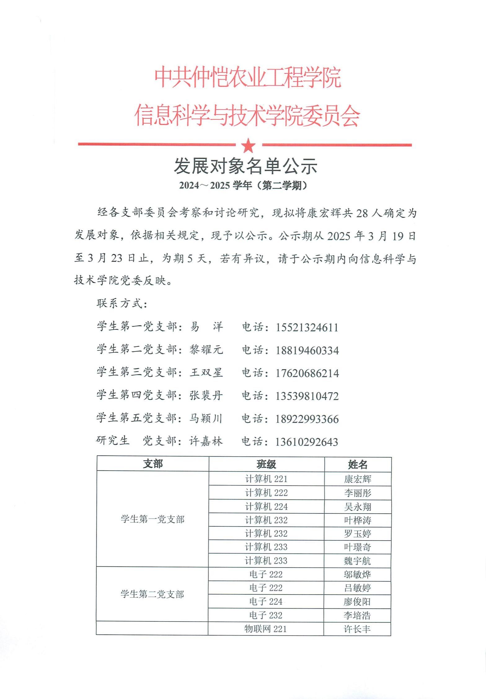 2024~2025学年(第二学期)发展对象名单公示