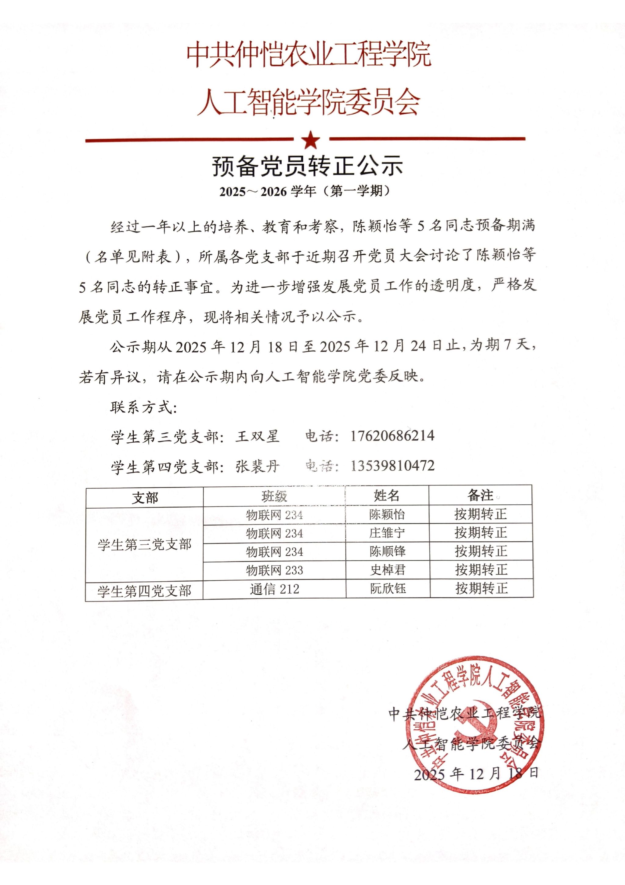 2025-2026学年(第一学期)预备党员转正名单公示(第二批)