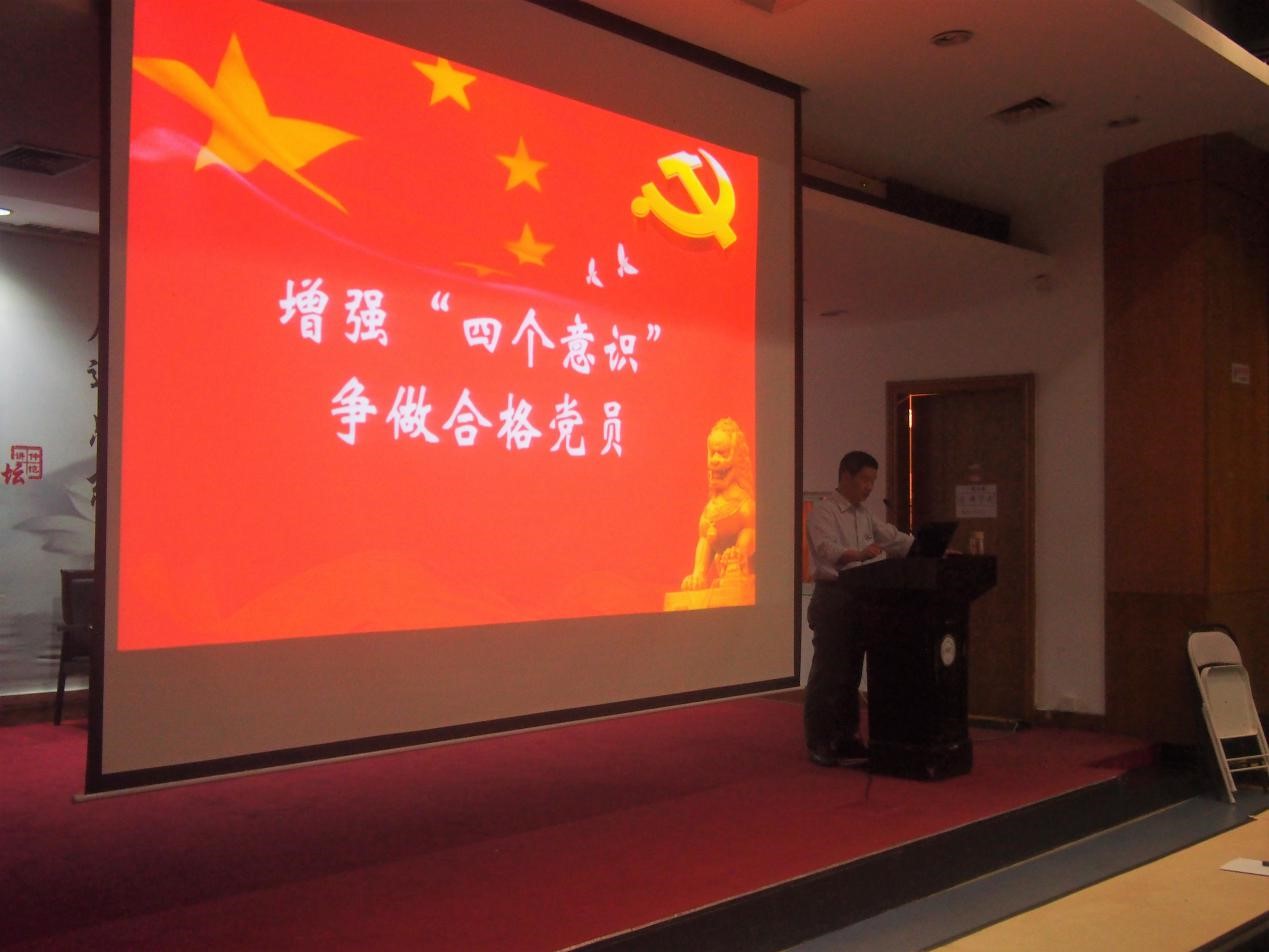 信息科学与技术学院党总支书记吴家培作会议讲话。他希望党员同学能够充分认识增强“四个意识”的必要性和重大意义,深刻理解“四个意识”的科学内涵,强化“四个意识”的实践,做合格党员。