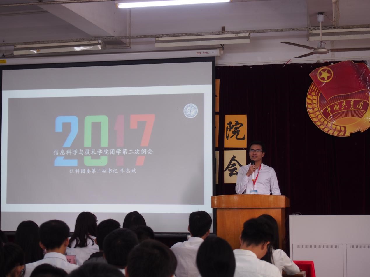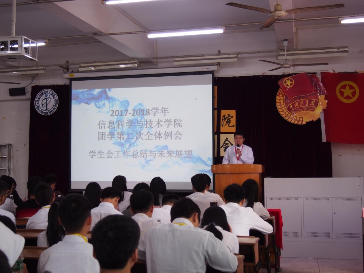 2017年12月11日中午,信息科学与技术学院2017-2018学年团学第二次例会在教学楼成功召开。出席本次例会的领导有信息科学与技术学院党总支副书记王浩老师,信息科学与技术学院2015、2017级辅导员吴南生老师。参加例会的还有校级兄弟组织,学院兄弟组织代表以及信息科学与技术学院团委、学生会全体部干。