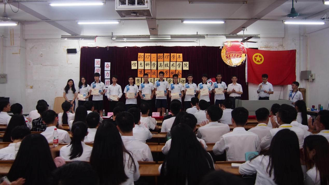 6月22日,信息科学与技术学院在教学楼B301举办2017-2018学年“海崇人力”晨读晚修学风建设表彰大会。学院党总支书记吴家培、副书记王浩,广州市海崇人力资源服务有限公司副总经理谢海珊,学院辅导员吴南生,以及学院团学骨干200余人参加了会议。会议由吴南生主持。