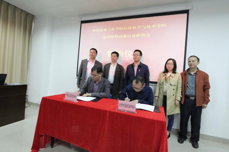 4月16日,信息科学与技术学院班子一行5人前往惠州市仲恺高新区参观广东惠州大学生创业孵化基地,并与惠州仲恺高新区技师协会举行产学研合作签订仪式。