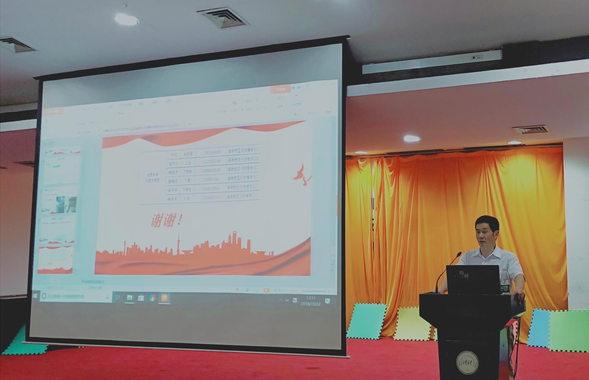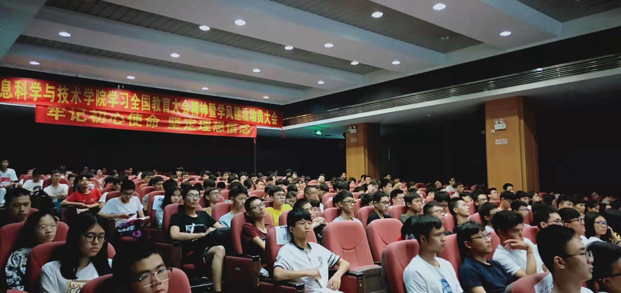 为营造优良学风、校风,更好迎接学校本科教学工作审核评估,10月22日,信息科学与技术学院在英东楼111举行了学习全国教育大会精神暨学风建设动员大会。学院党总支书记吴家培、副书记王浩、各年级辅导员及各班主要学生干部,学生党员,学生组织干部、宿舍长参加。会议由刘卓老师主持。