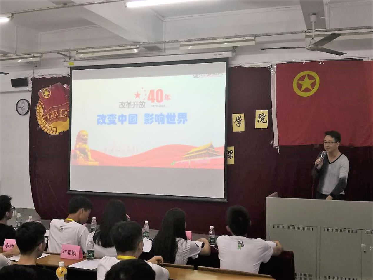 为提高广大团员青年的思想政治修养,加强基层团建,充分发挥团组织教育青年的功能,进一步加大对团员青年、团学干部的培养教育力度,12月2日晚。信息科学与技术学院在教学楼B501开展专题团课活动,主题为“改革开放40年,改变中国影响世界”,由信息科学与技术学院团委副书记吴南生老师主讲,参加对象为全院学生干部和2018级各班同学。