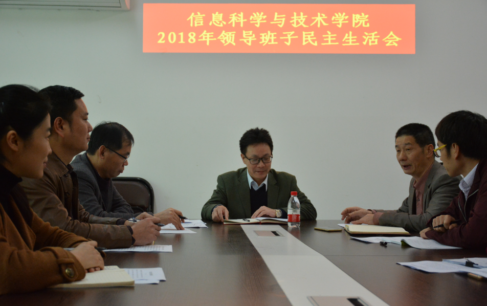 1月16日,信息科学与技术学院召开2018年领导班子民主生活会,学校副校长田允波、学院党总支书记吴家培、院长刘双印、党总支副书记王浩,副院长刘磊安,教工党支部书记和办公室主任参加。会议由吴家培主持。