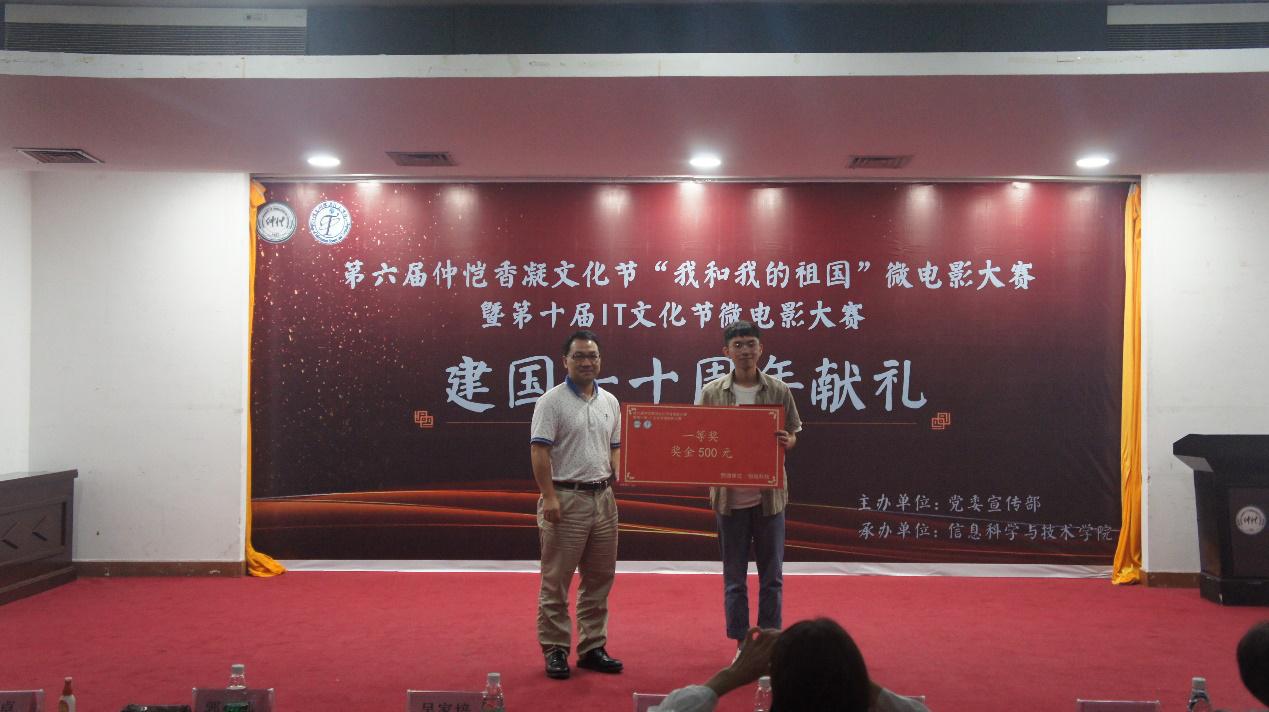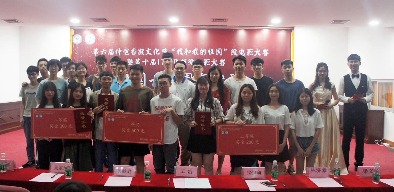 5月23日晚,由校党委宣传部主办,信息科学与技术学院承办的第六届仲恺香凝文化节“我和我的祖国”微电影大赛暨第十届IT文化节微电影大赛在学术报告厅举行,献礼祖国七十华诞。校党委宣传部部长曾献尼、信息科学与技术学院党总支书记吴家培、党委组织部副部长王浩、校报编辑部主任郭小娜、微电影指导老师梁瑜、辅导员刘卓以及学生干部代表出席。