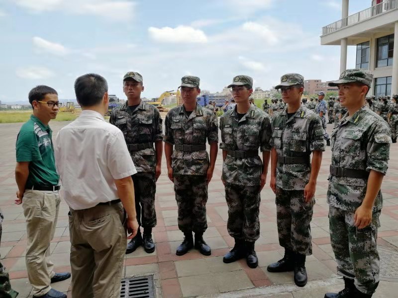 8月29日上午,信息科学与技术学院对2019级军训学生教官进行了慰问。学院党总支书记吴家培、组织部副部长王浩领队,辅导员吴南生、田旭峰一行来到白云校区看望正在训练的学生教官们。