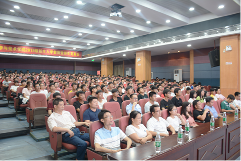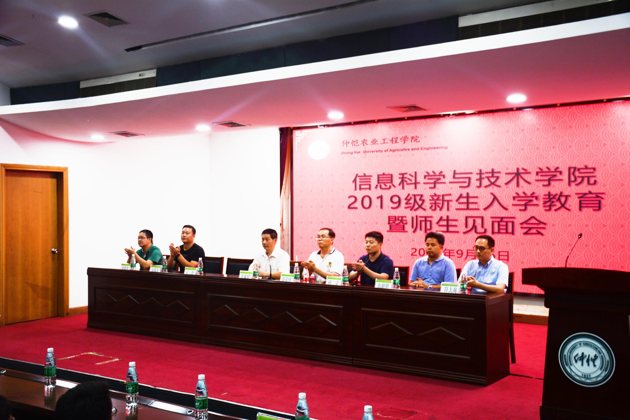 为贯彻学校党委《关于开展“不忘初心、牢记使命”主题教育实施方案》,把主题教育与庆祝新中国成立70周年结合起来,落实立德树人根本任务,9月26日晚,我院2019级新生入学教育暨师生见面会在海珠校区学术报告厅隆重举行。学院党总支书记吴家培、院长刘双印、党委组织部副部长王浩、学院副院长刘磊安、杨灵,以及专业负责人郑建华、肖明明、符志强出席,办公室主任、全体辅导员、教务员、新生班主任以及全体2019级新生参加。