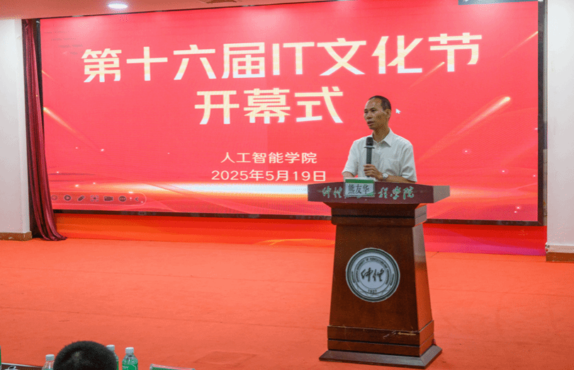 在第十六届IT文化节开幕式上,人工智能学院党委书记熊友华回顾了学院近三年来竞赛育人成果:学生参加各种学科竞赛荣获国家级奖项126项、省级奖项552项,入选全校"攀登计划"重点项目。这些成果不仅为学院赢得荣誉,更丰富了学生们的实战经验,助力学生在人工智能、软件开发等领域成长为极具竞争力的技术人才。
