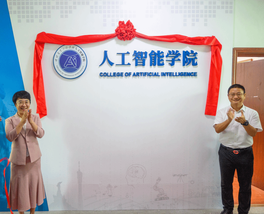 5月19日,学校以“与AI共创未来”为主题,在海珠校区举行系列活动。学校党委书记翟雪梅,党委副书记、校长廖明,党委常委、副校长张文峰出席人工智能学院揭牌仪式和科创成果展,相关职能部门负责人,人工智能学院师生代表参加活动。