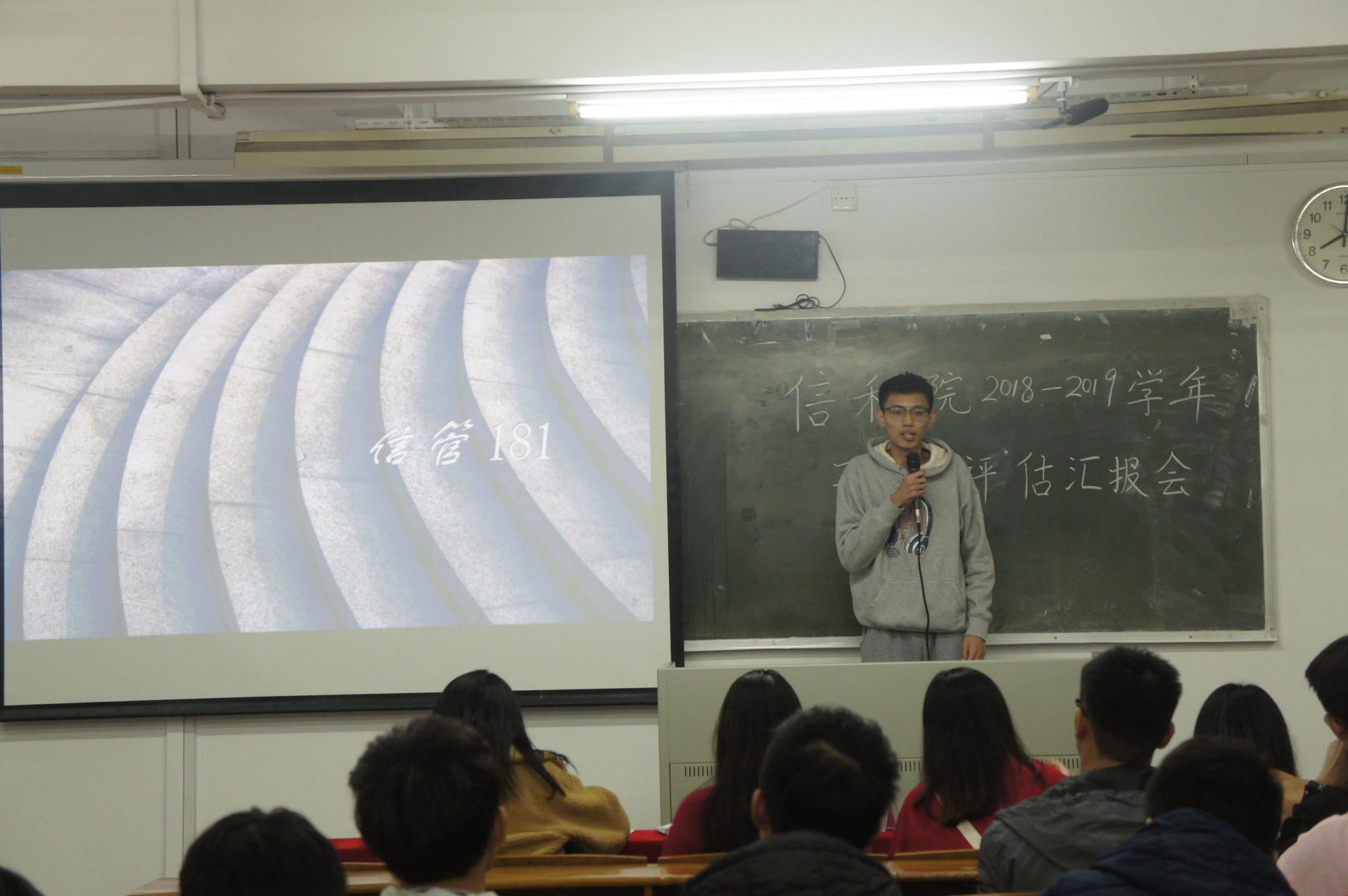本次汇报会有来自2016、2017、2018三个年级的42个班级参与,各班级学生代表逐一上台通过讲解PPT的方式来展示班级建设情况,分别从班级组织建设、学风建设、思想道德建设和文体表现四个方面展示,对过去一学年班风建设情况进行自我总结和成果汇报。汇报中,不少班级准备充分,亮点和成绩突出,赢得现场观众掌声和好评。