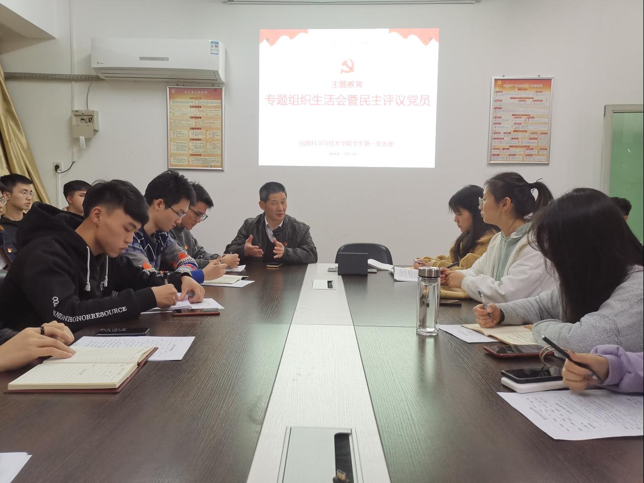 12月6日,我院学生第一党支部在教学楼东312会议室开展主题教育专题组织生活会暨民主评议党员。学院党总支书记吴家培出席并做学习指导,会议由支部书记吴南生主持。