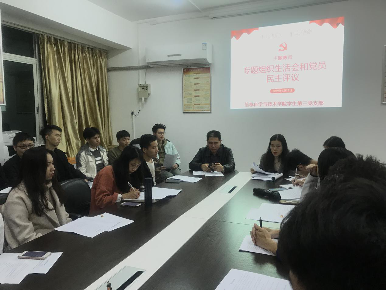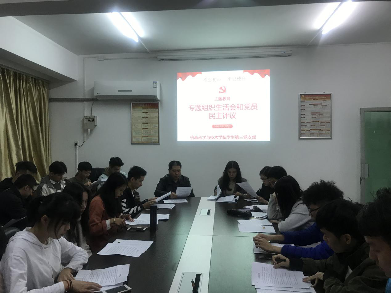 根据习近平总书记关于“不忘初心、牢记使命”主题教育重要讲话和重要指示精神,按照《关于第二批主题教育单位基层党组织召开专题组织生活会和开展民主评议党员的通知》要求,结合支部工作实际,12月5日,我院学生第三党支部在教学楼东312召开“不忘初心、牢记使命”专题组织生活会暨民主评议党员大会。学校党委委员、教务处处长石玉强出席,学院学生第三党支部全体党员参加。