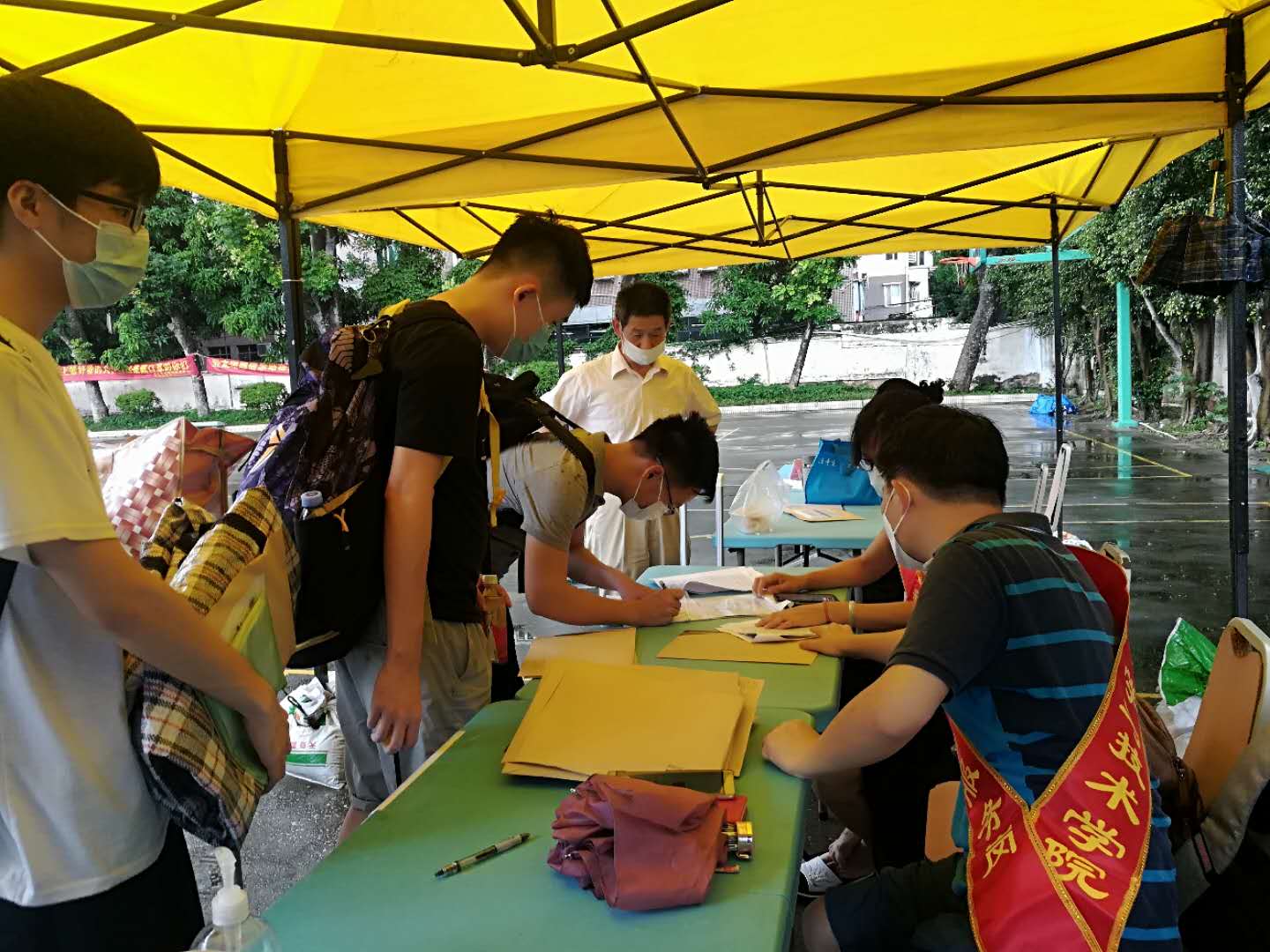 2020年6月3日,我院经过前期紧锣密鼓的准备,迎来了本学期第一批返校毕业生。当日,学院党总支书记吴家培带领学生工作干部及党员教师志愿者值守南区服务值班点。