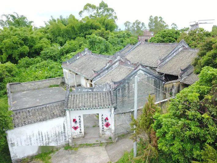 罗定市国宝黄公祠立于泷水之滨,位于素龙街道和村委素龙街道办事处七和村松㒼(音“朗”)村,于2019年4月被公布为第九批广东省重点文物保护单位。该祠建于清同治十六年辛未(1871年),坐东北向西南,背依山丘,前临泷江河(罗定江),一路二进四耳房,面阔21米,进深23.5米,建筑面积493平方米。前9.8米深地堂,左侧有围墙开斗门,占地面积782平方米,硬山顶,灰塑龙船博古脊,平瓦,人字凤尾封山火墙。青砖墙,红石脚,绿釉瓦当,滴水,墙面抹灰勾划砖缝,八角形石檐柱,檐墙坭水画为浅绛水墨人画,有陈老莲画法,内墙嵌素瓷花窗,对研究清建筑艺术有重要价值。抗日战争时期,仲恺农工学校为躲避战火,曾迁来此处办学,办学期间,学生秉承“实践第一,服务农工”的宗旨一边学习理论,一边开办农场种植瓜菜及种桑养蚕,也为周边小学进行支教,留下很好的口碑和历史足迹。