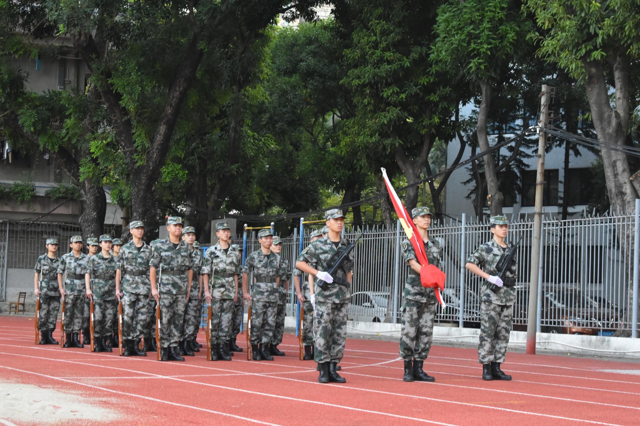 上午7点整,全体人员就位,全场肃静。军事教导大队国旗护卫队迈着整齐的步伐,护卫着国旗走近升旗台。伴随着庄严嘹亮的《义勇军进行曲》,五星红旗冉冉升起,全体师生怀着憧憬和自豪的心情,向迎风飘扬的五星红旗行注目礼,表达心中无限的敬意。