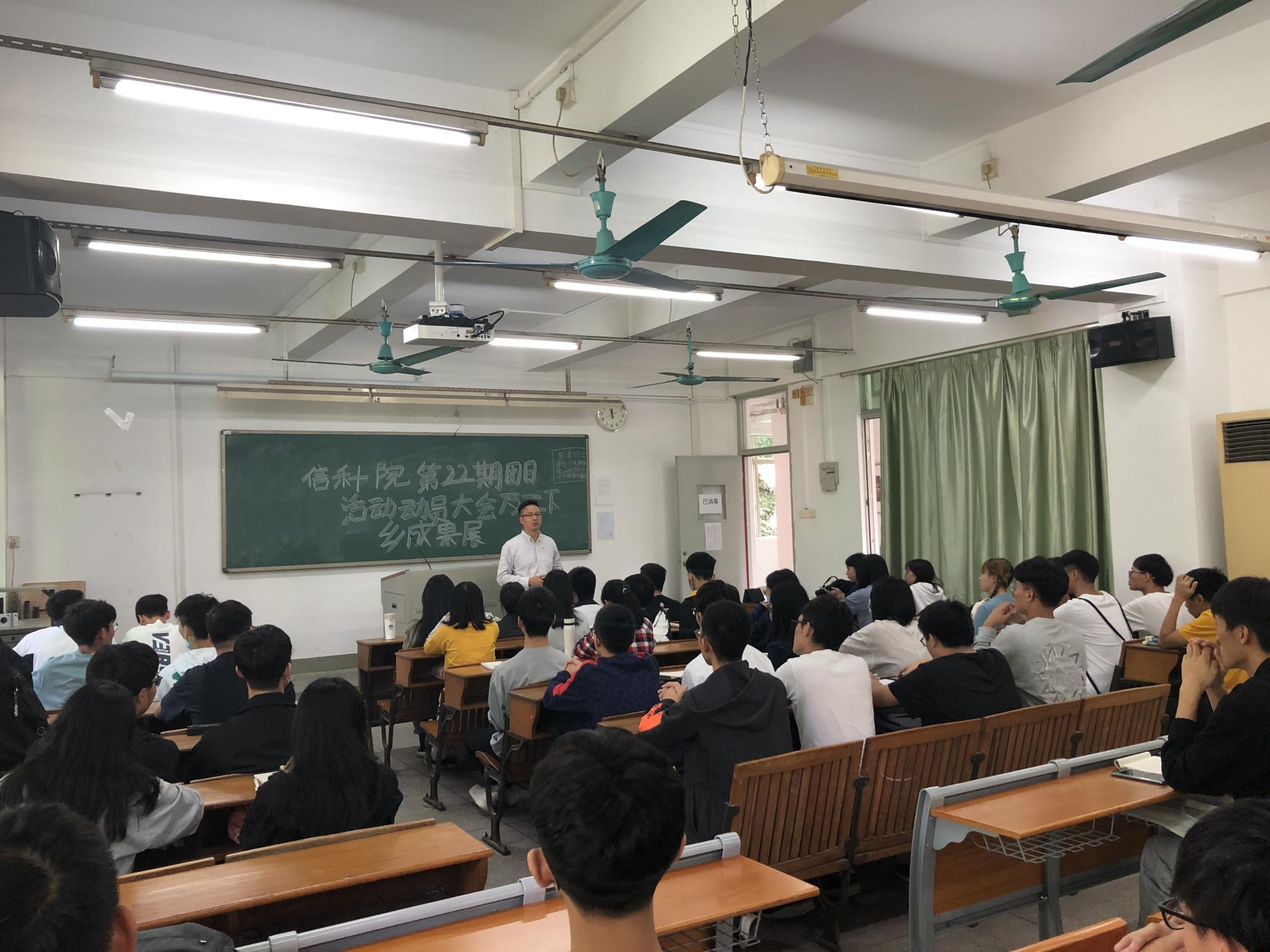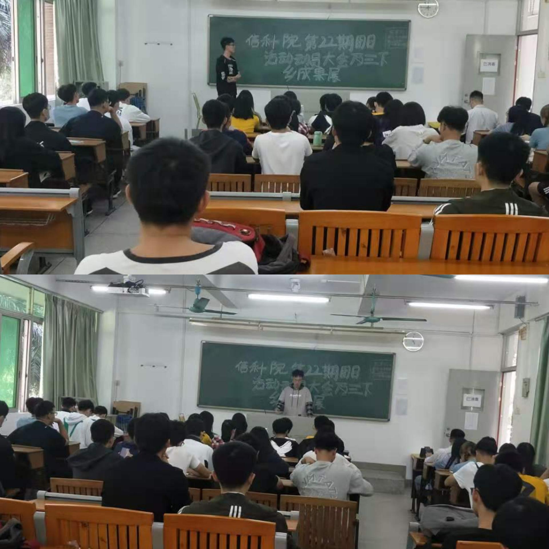 院团委实践部部长周栩鸿介绍三下乡成果展的内容,并动员各团支部参观28~29号的三下乡成果展。院团委组织部部长陆冠儒讲解团日活动的目的与意义并详细讲解团日活动的活动方式。