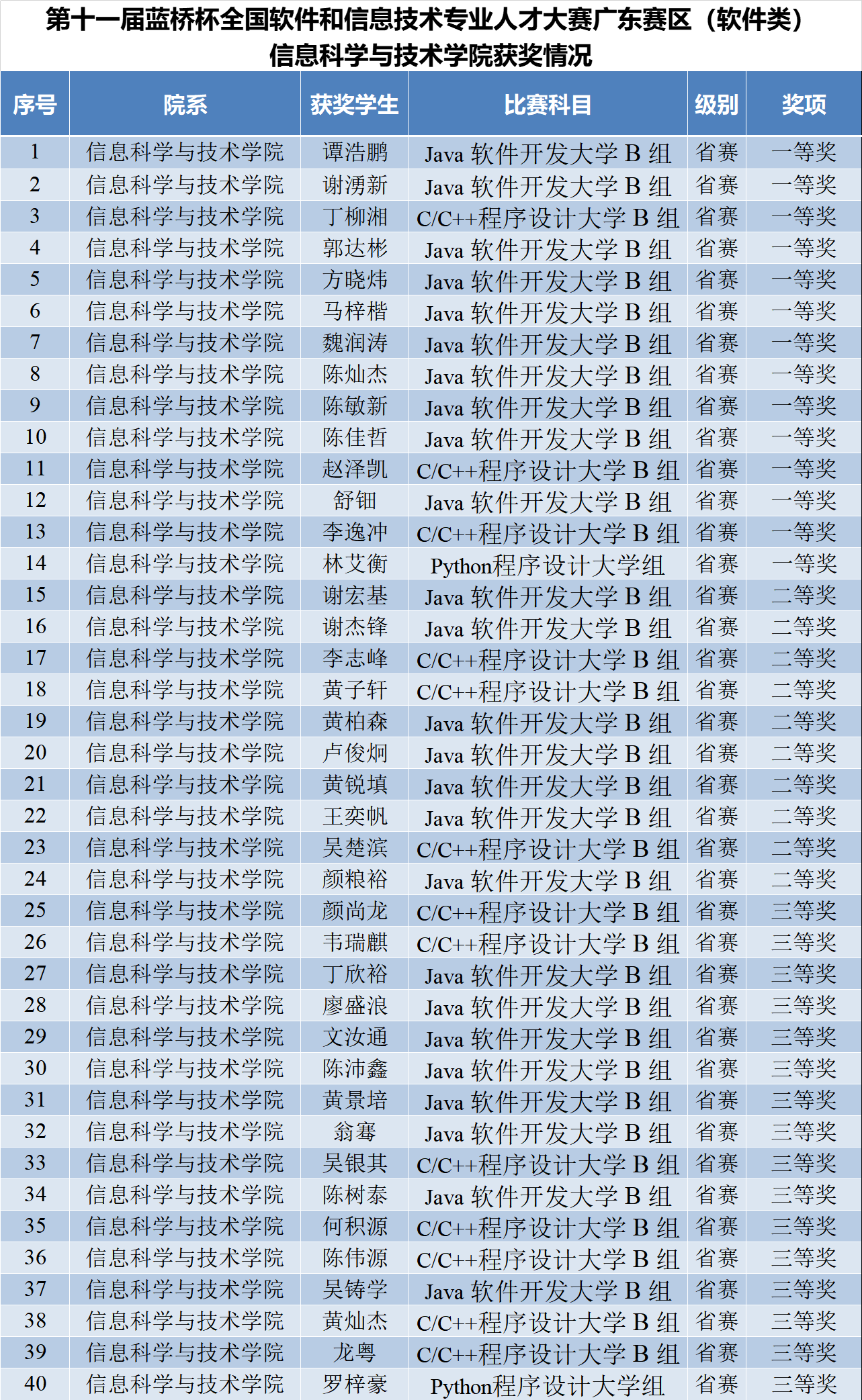 我院蓝桥杯广东赛区获奖名单
