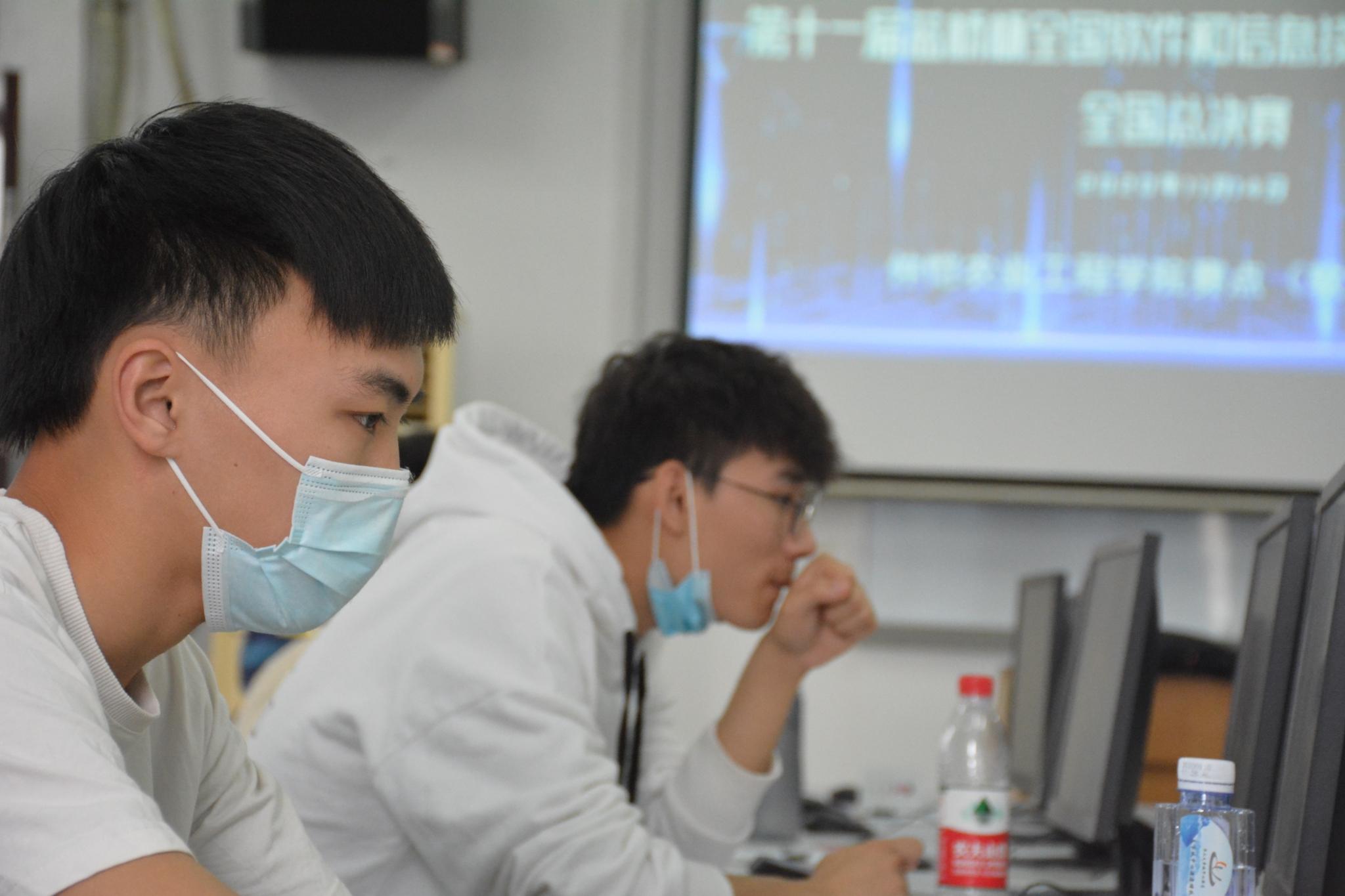 比赛开始前,工作人员首先对机器进行了调试,并对机器接触面进行了全面消毒。为保证考试公平公正进行,考务人员引导考生于英东楼702候考室进行准备工作,收集所有考生近14天的健康表并检查了考生的身份证、学生证、准考证。待核对完所有信息后,方允许进场。选手们悉数进场就坐后,考务人员宣读此次比赛细则和注意事项。