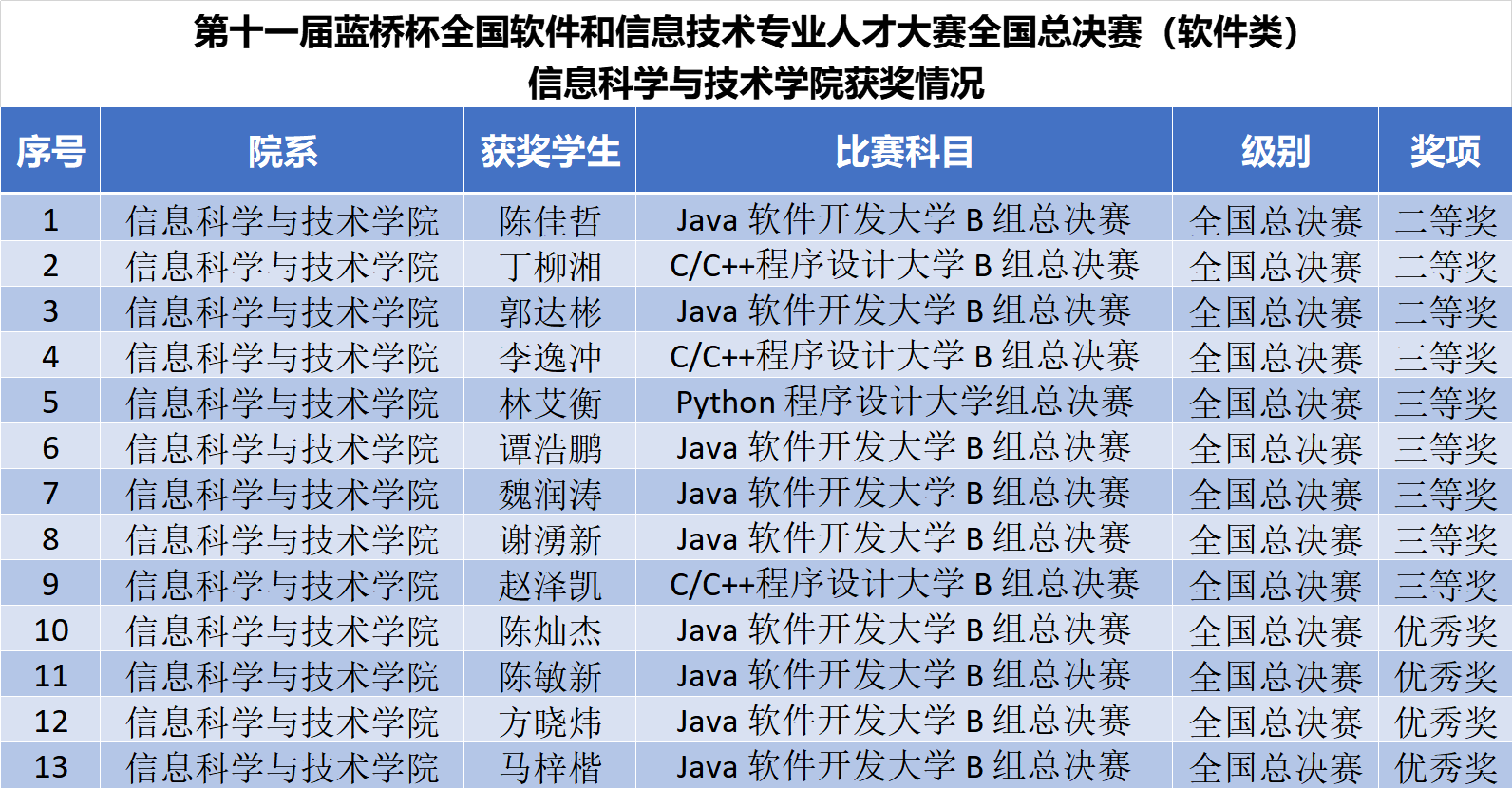 我院蓝桥杯全国总决赛获奖名单
