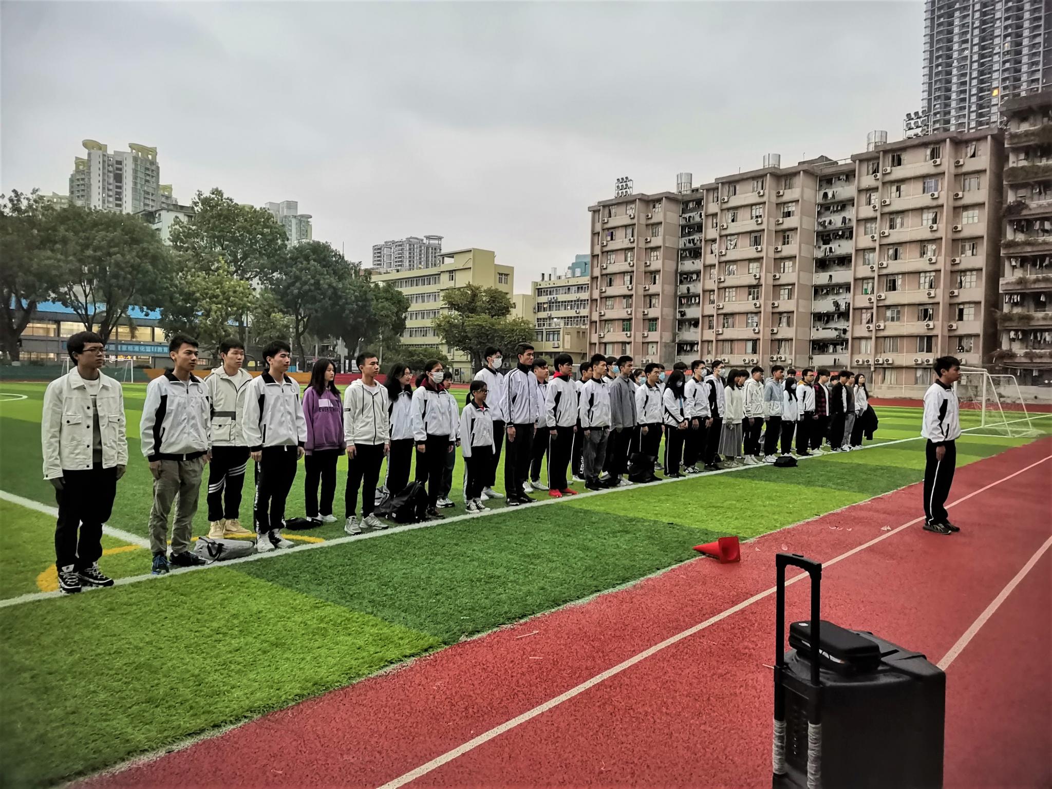 为加强爱国主义的教育,增强广大同学们的爱国意识,12月14日上午,我院在海珠校区足球场举行了本学期第十五周升旗仪式。2019级辅导员田旭峰、学院第62期发展党员和19级预备党员参加了本次升旗仪式。仪式由八一教官团团长何骏锴主持。