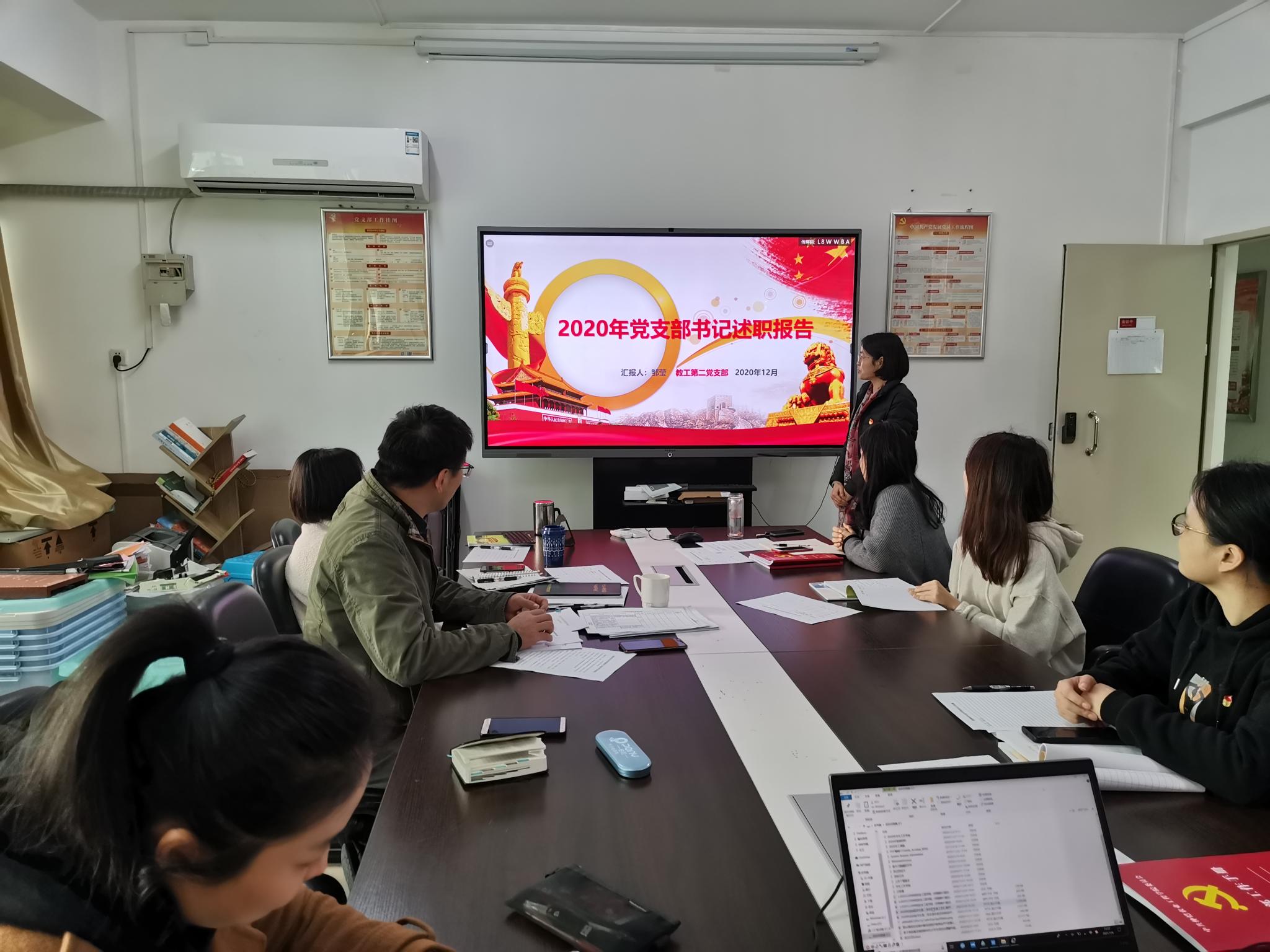 会上,2个教工党支部书记和3个学生党支部书记结合主业,围绕“支部基本情况、主要工作情况、工作亮点及业绩、存在问题及进一步改正措施”几个模块分别用PPT形式对各自支部一年工作进行展示及总结汇报。随后,与会人员就5位党支部书记的述职汇报进行了深入的交流与考评。